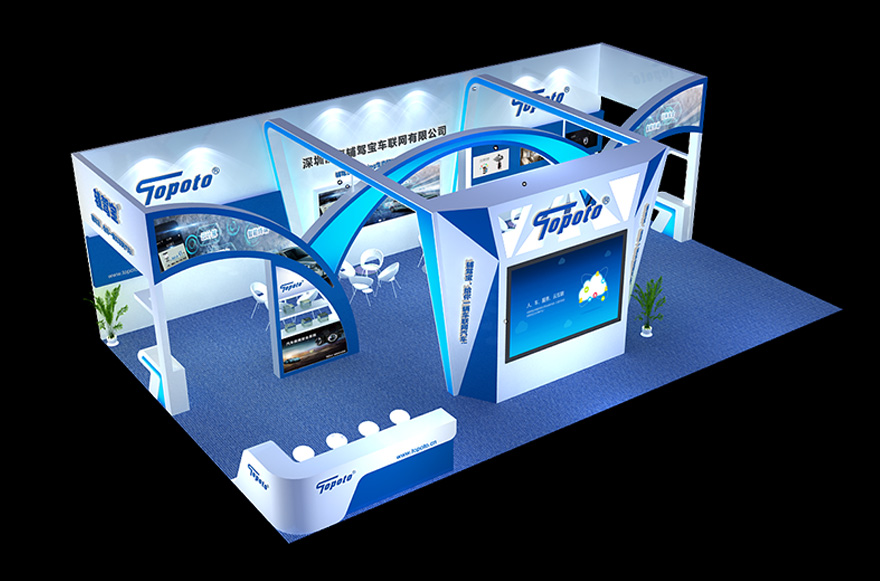展台采用独特的框架结构,交错的支柱展现品牌信息,富有科技感